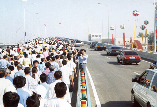 ??? 1997年8月~1998年10月,濟(jì)南第一座城市高架路——順河高架路建成。國慶節(jié)通車時,上萬市民登橋體驗(yàn)“空中走廊”。