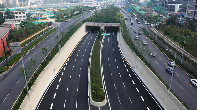 ??? ?2016年5月~2017年12月,順河高架路南延二期工程(玉函路隧道)建成,成功連接老順河高架和英雄山路南段新橋,比計劃工期提前一年建成通車,創(chuàng)造了國內(nèi)城市淺埋暗挖隧道建設(shè)難度之最,更刷新了“濟(jì)南建設(shè)速度”。