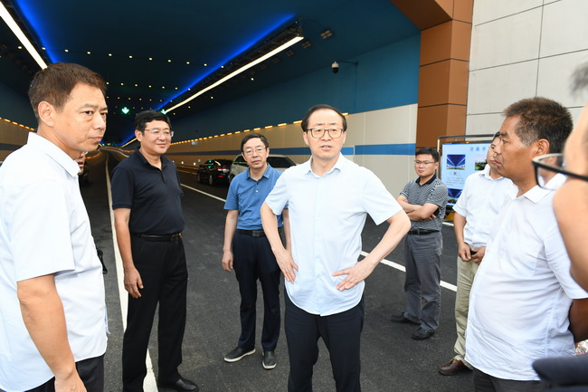 市城鄉(xiāng)交通運(yùn)輸局局長賈玉良察看集團(tuán)順河快速路南延建設(shè)工程望岳路隧道通車準(zhǔn)備工作