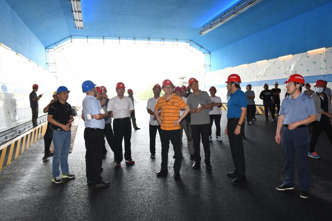 ??? 賈玉良局長來到集團(tuán)順河快速路南延建設(shè)工程隧道北敞口段,察看順河快速路南延建設(shè)工程施工情況。調(diào)研過程中,牟曉巖總經(jīng)理介紹了順河快速路南延建設(shè)工程施工進(jìn)展和隧道內(nèi)防火施工等情況,以及下一步面層施工等工作部署安排等內(nèi)容。