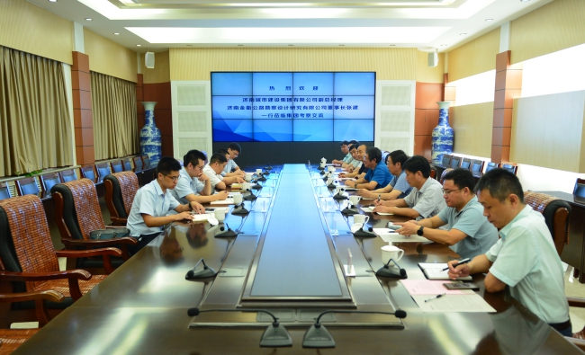 ??? 8月7日下午,濟(jì)南城市建設(shè)集團(tuán)有限公司副總經(jīng)理、濟(jì)南金衢公路勘察設(shè)計(jì)研究有限公司董事長(zhǎng)張建,濟(jì)南金衢公路勘察設(shè)計(jì)研究有限公司總經(jīng)理馮子強(qiáng)等一行4人來集團(tuán)考察交流。集團(tuán)總經(jīng)理牟曉巖,副總經(jīng)理呂守明、田國(guó)鋒、馬烽以及相關(guān)單位負(fù)責(zé)人在四樓會(huì)議室參加座談交流。