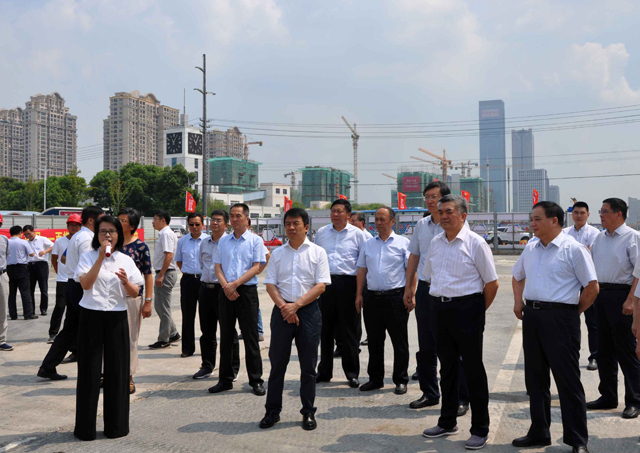劉廣忠(前排右二)、史立軍(前排右三)察看永定路工程進(jìn)展