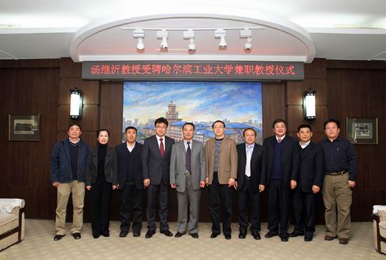 ??? 2011年11月18日,集團(tuán)黨委書記、董事長湯繼沂受聘哈爾濱工業(yè)大學(xué)兼職教授儀式在哈工大舉行。哈爾濱工業(yè)大學(xué)校長助理安實為董事長頒發(fā)兼職教授證書。